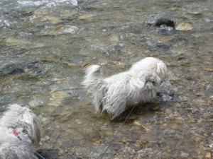Beau & Lizzie in river near Clear Creek Res. in CO